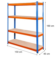 Regał magazynowy Mega-M PRO MAX H-180 cm L-150 cm G-45 cm 4 półki z MDF 15 mm 500 kg niebiesko-pomarańczowy