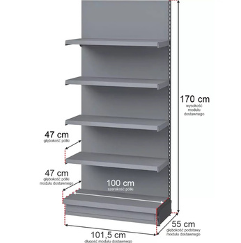 Regał sklepowy Mega-M Merkury przyścienny H-170 cm L-101,5 cm G-47 cm moduł dostawny grafitowy