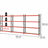 Regał magazynowy 12-półkowy Mega-M FORTIS H-240 cm L-784 cm G-40 cm