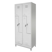 Szafka ubraniowa BHP Mega-M na podstawie z nóżkami 2 drzwiowa z przegrodami szara S-60 cm G-50 cm H-190 cm skręcana N